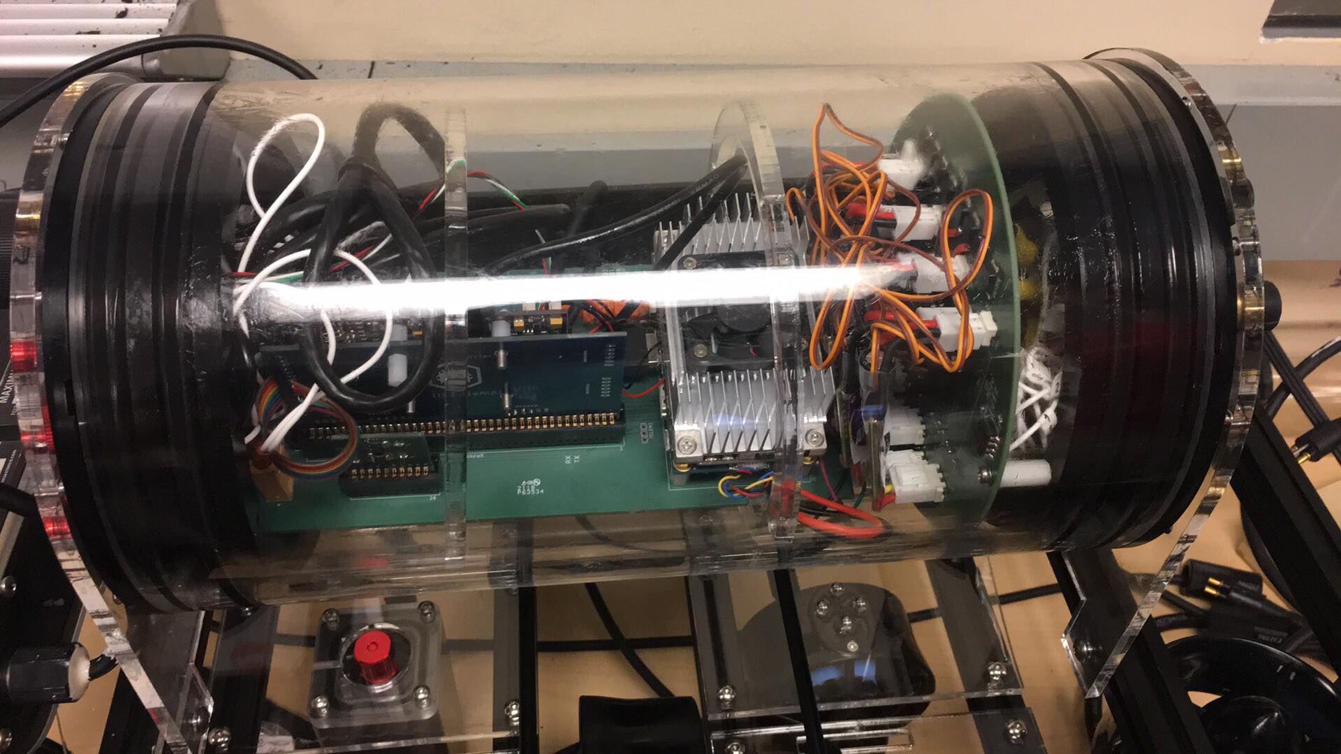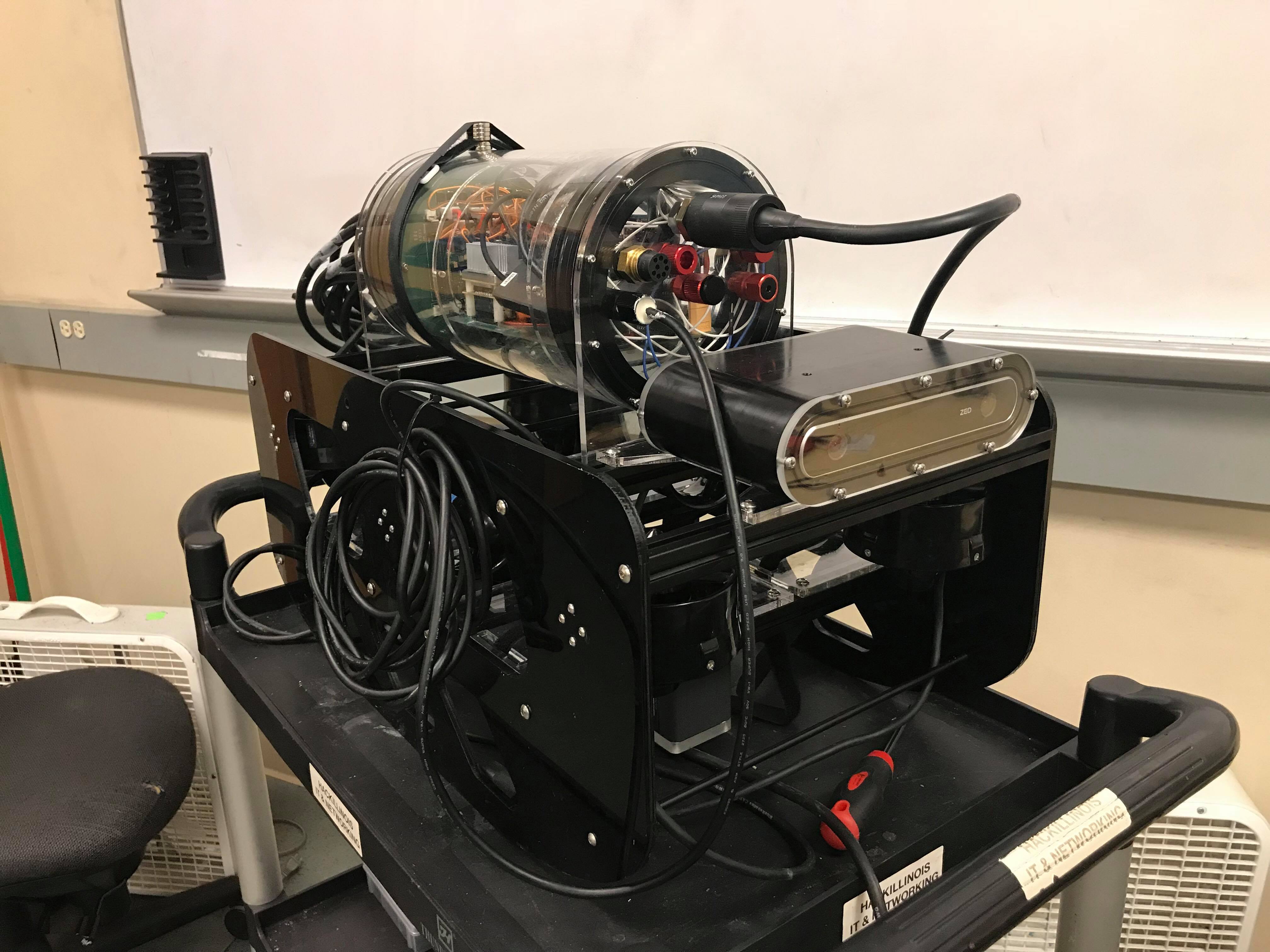 Illinois AUV has limited resources and manpower for designing and implementing complex mechanical systems. Our school does not provide students with easy access to CNC machining tools, and few metal machining tools are available. With these limitations, our team focused on building a submarine that was feasible to construct with only a laser cutter.